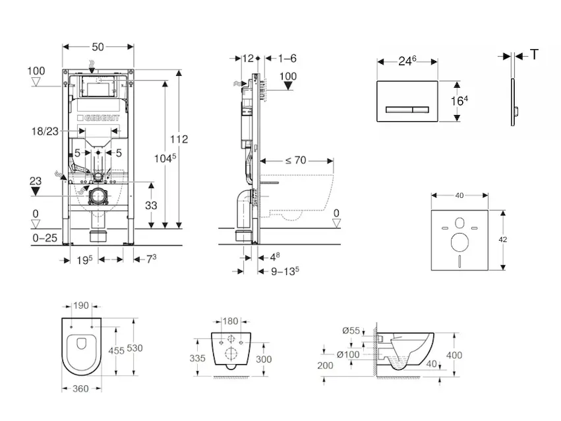- pro závěsná WC s připojovacími rozměry podle EN 33 a přesahem do 70 cm