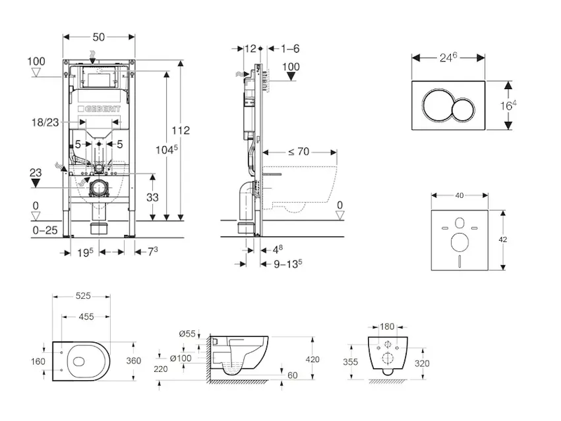 - k montáži do systémových stěn Geberit Duofix částečně vysokých nebo vysokých na výšku místnosti