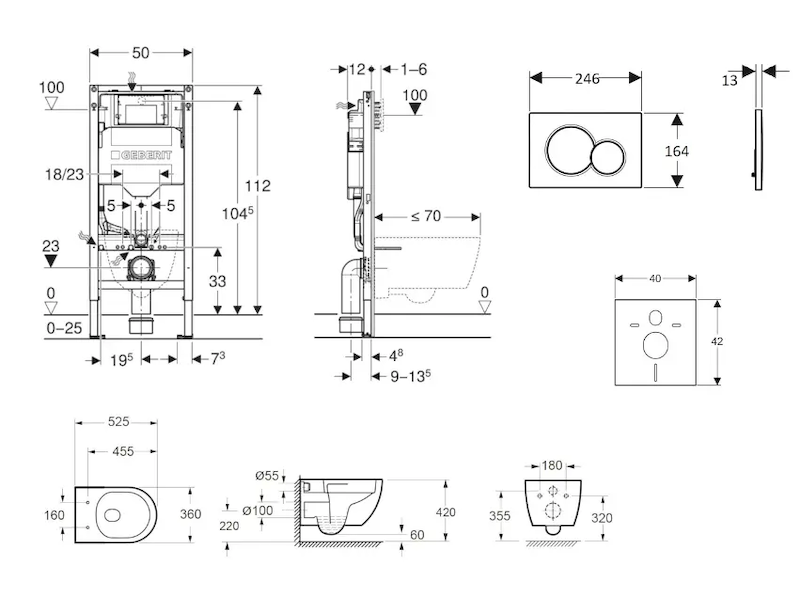 - k montáži do systémových stěn Geberit Duofix částečně vysokých nebo vysokých na výšku místnosti