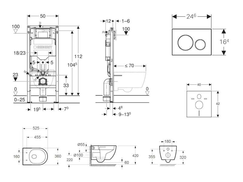 - k montáži do systémových stěn Geberit Duofix částečně vysokých nebo vysokých na výšku místnosti