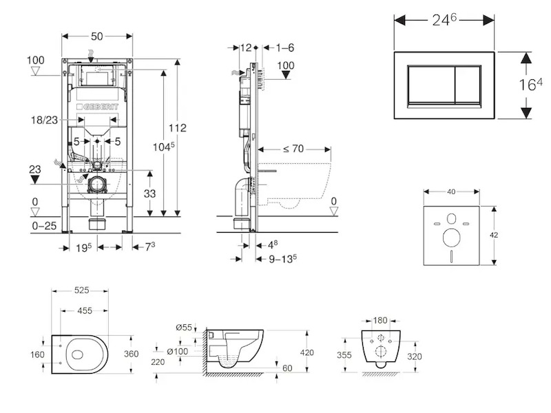 - pro závěsná WC s připojovacími rozměry podle EN 33 a přesahem do 70 cm