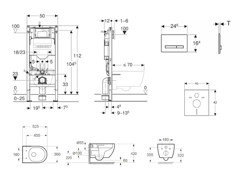 - pro závěsná WC s připojovacími rozměry podle EN 33 a přesahem do 70 cm