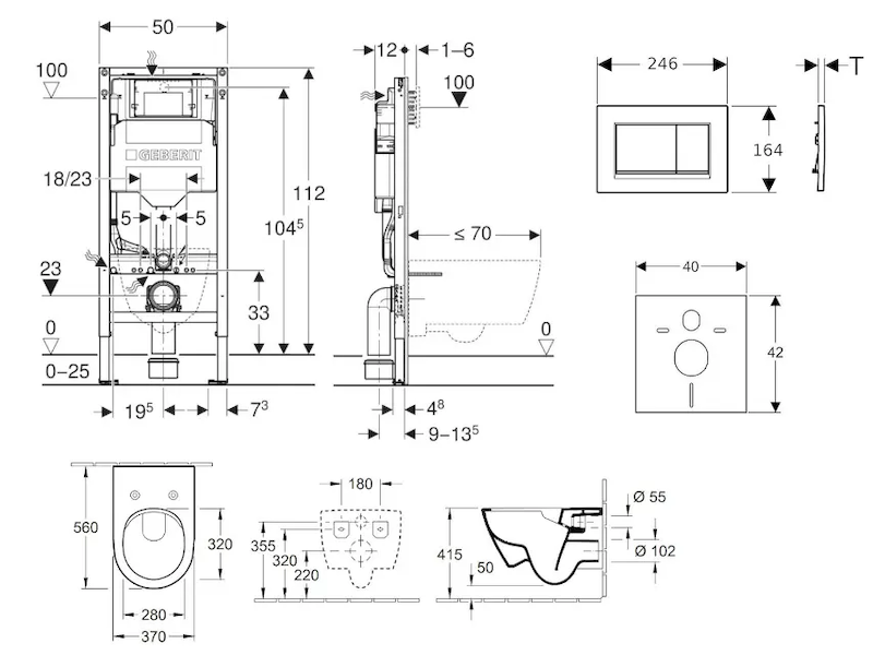 - vybaven trubkovou chráničkou pro přívodní potrubí k připojení sprchovacích WC Geberit AquaClean