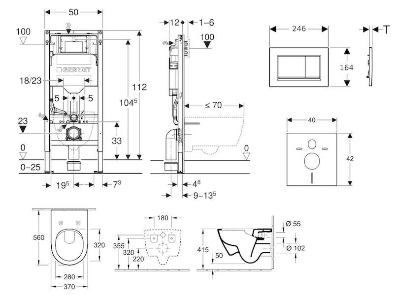 - vybaven trubkovou chráničkou pro přívodní potrubí k připojení sprchovacích WC Geberit AquaClean