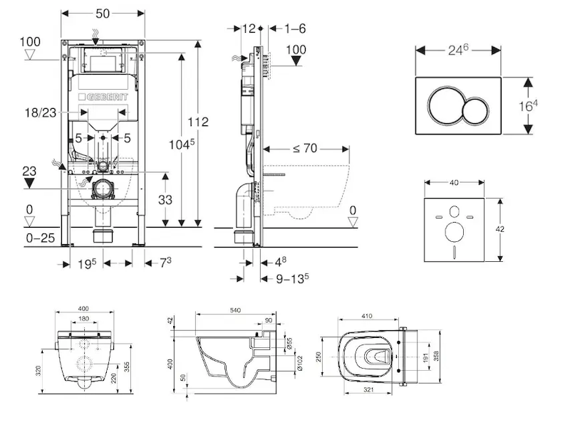 - pro závěsná WC s připojovacími rozměry podle EN 33 a přesahem do 70 cm