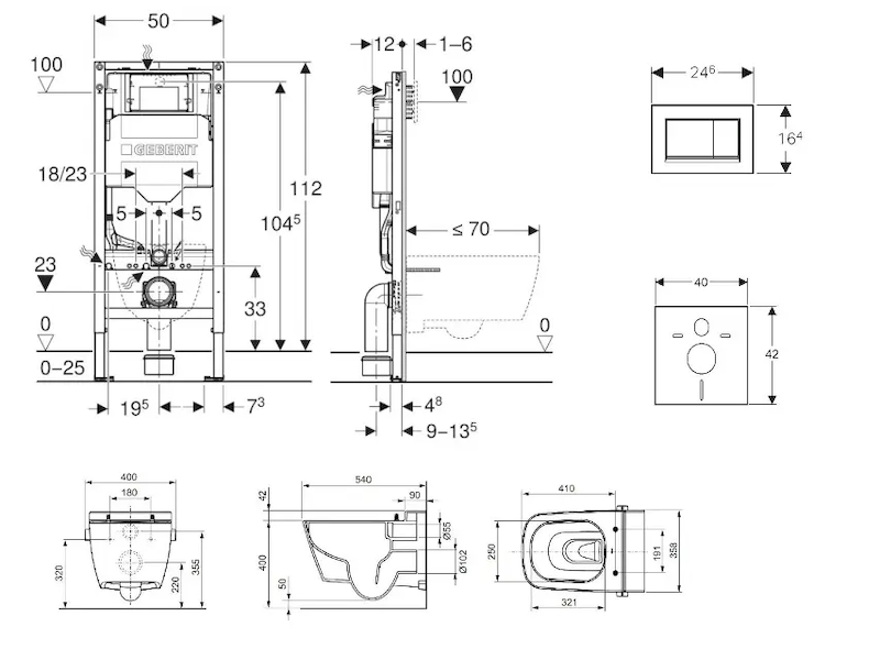 - vybaven trubkovou chráničkou pro přívodní potrubí k připojení sprchovacích WC Geberit AquaClean