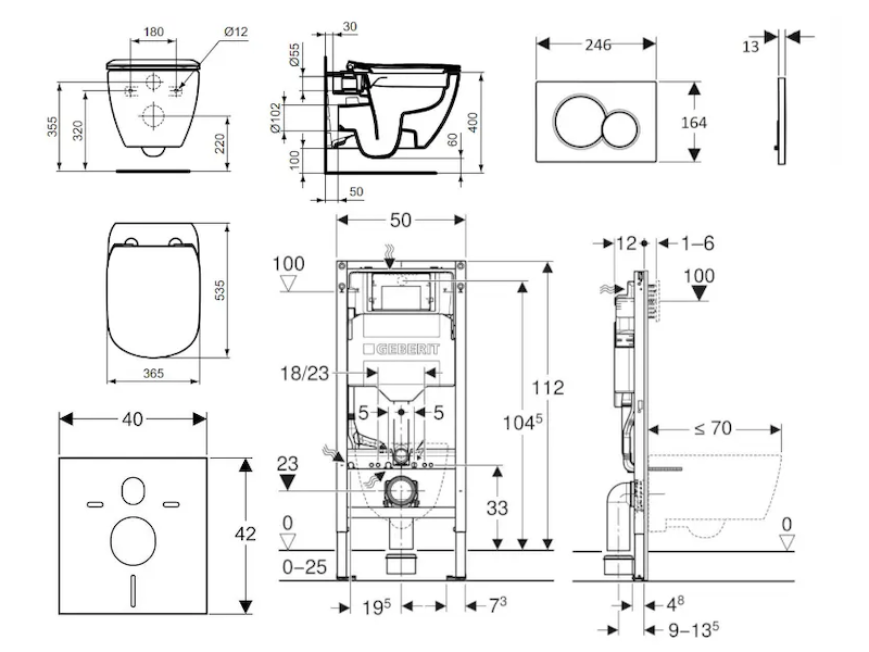 - vybaven trubkovou chráničkou pro přívodní potrubí k připojení sprchovacích WC Geberit AquaClean
