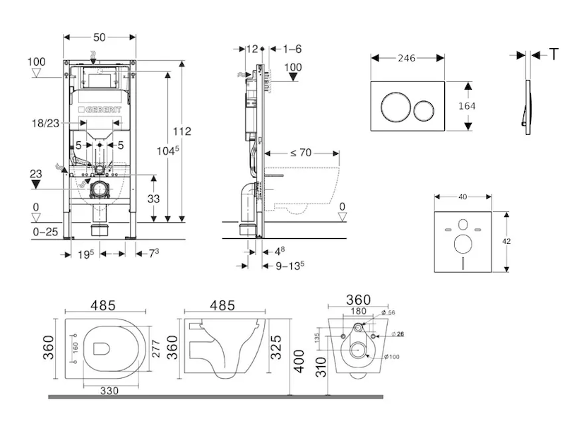- k montáži do systémových stěn Geberit Duofix částečně vysokých nebo vysokých na výšku místnosti