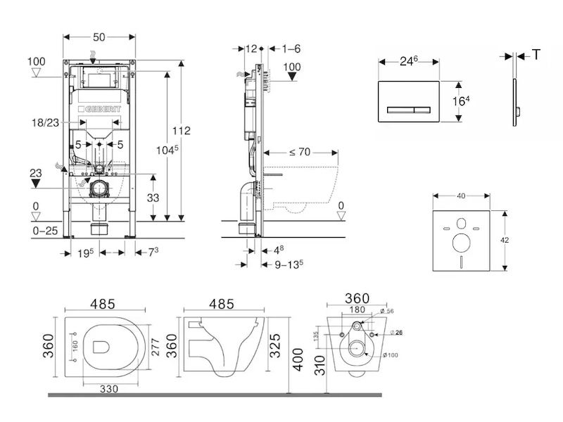 - vybaven trubkovou chráničkou pro přívodní potrubí k připojení sprchovacích WC Geberit AquaClean