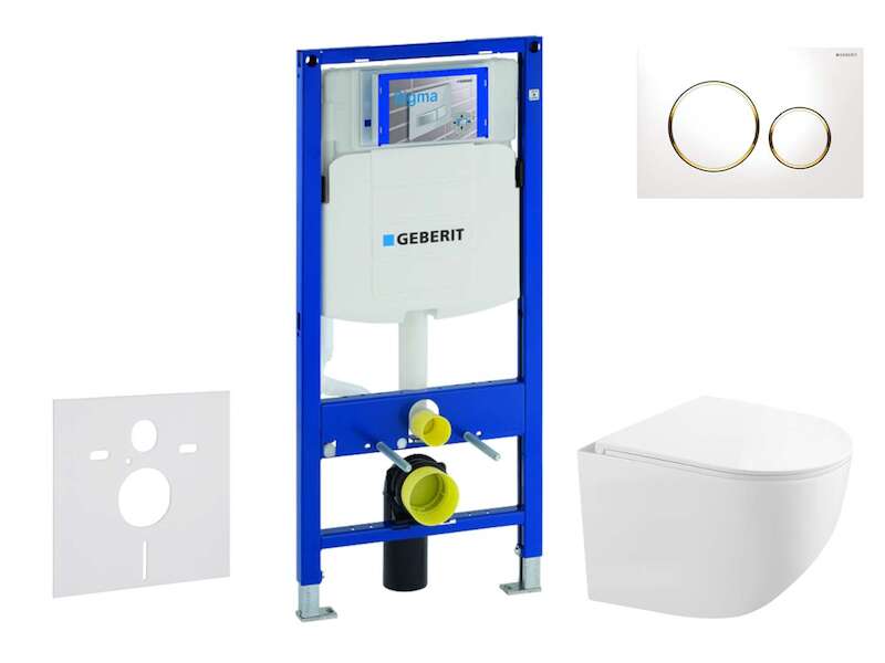 Geberit Duofix - Set předstěnové instalace, kompaktního klozetu Gaia sedátka softclose, tlačítko Sigma20, bílá/pozlacená SANI11CA3147