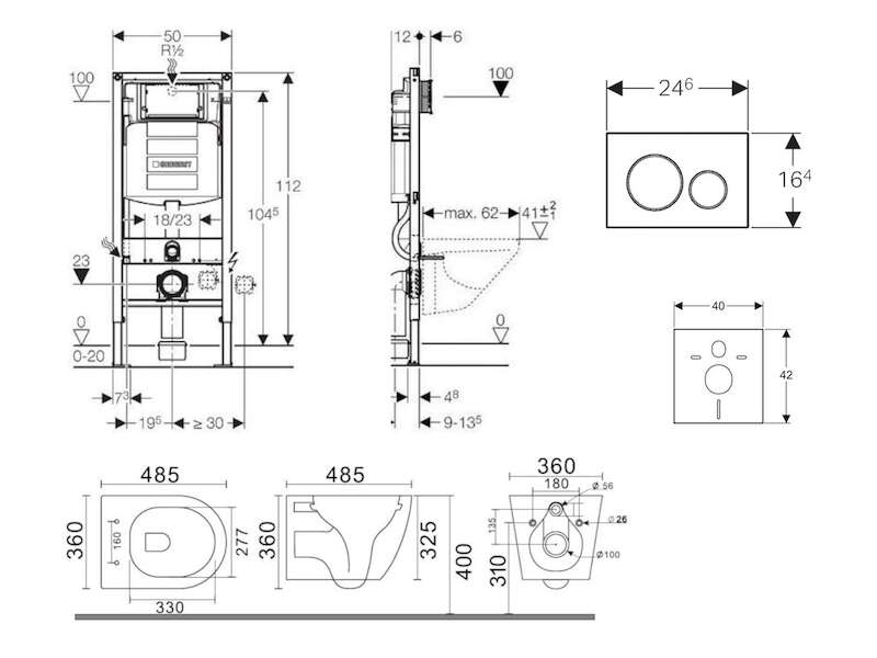 - k montáži do systémových stěn Geberit Duofix částečně vysokých nebo vysokých na výšku místnosti