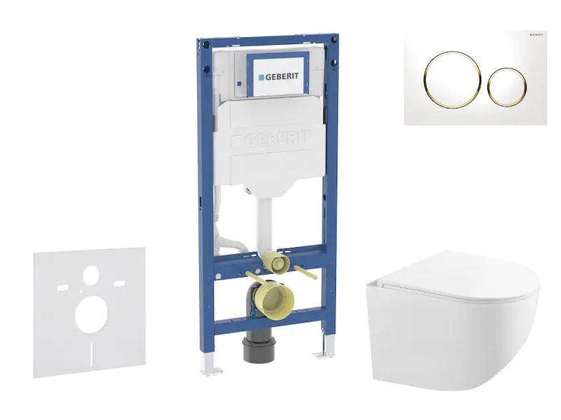Geberit Duofix - Set předstěnové instalace, kompaktního klozetu Gaia sedátka softclose, tlačítko Sigma20, bílá/pozlacená SANI11CA3147B