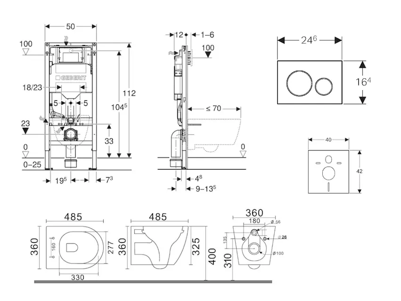 - vybaven trubkovou chráničkou pro přívodní potrubí k připojení sprchovacích WC Geberit AquaClean