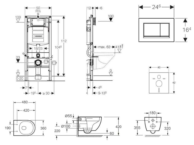 - pro závěsná WC s připojovacími rozměry podle EN 33:2011