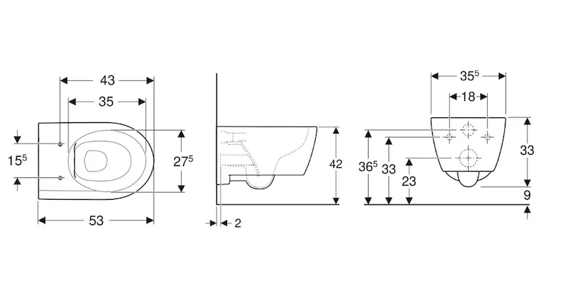 - jednoduché upevnění pomocí upevnění ke stěně Geberit typ EFF3 pro WC