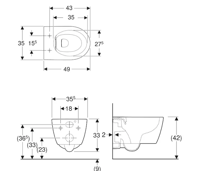 - zkrácené vyložení - k osazení v malých koupelnách a WC pro hosty