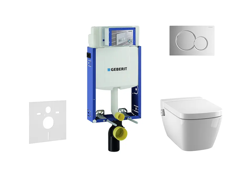 Geberit Kombifix - Modul pro závěsné WC s tlačítkem Sigma01, lesklý chrom + Tece One - sprchovací toaleta a sedátko, Rimless, SoftClose 110.302.00.5 NT2