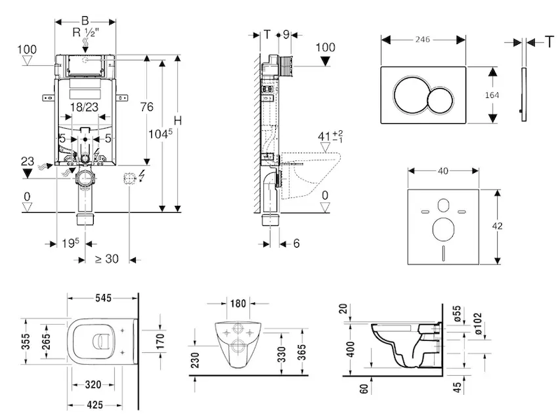 - vybaven trubkovou chráničkou pro přívodní potrubí k připojení sprchovacích WC Geberit AquaClean
