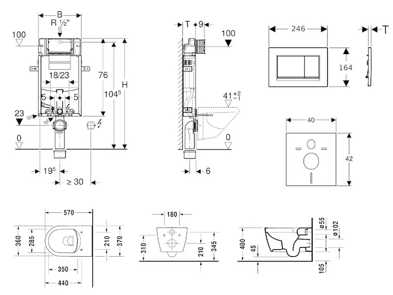 - vybaven trubkovou chráničkou pro přívodní potrubí k připojení sprchovacích WC Geberit AquaClean