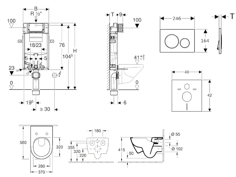 - předstěnový instalační modul Geberit Kombifix (110.302.00.5), se splachovací nádržkou pod omítku Sigma 12 cm