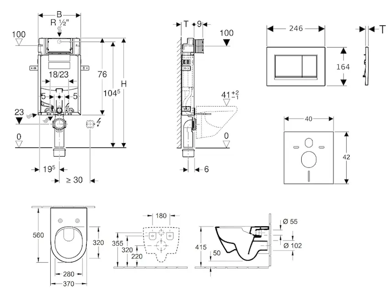 - vybaven trubkovou chráničkou pro přívodní potrubí k připojení sprchovacích WC Geberit AquaClean