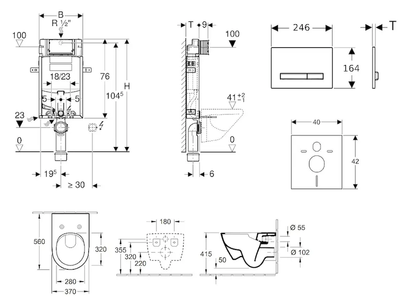 - předstěnový instalační modul Geberit Kombifix (110.302.00.5), se splachovací nádržkou pod omítku Sigma 12 cm