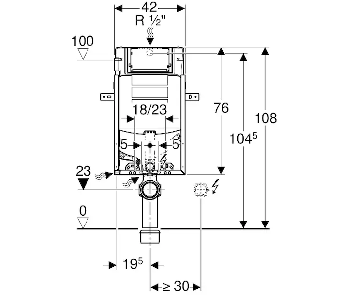 - vybaven trubkovou chráničkou pro přívodní potrubí k připojení sprchovacích WC Geberit AquaClean