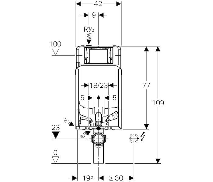 - Splachovací nádržka pod omítku s ovládáním zepředu, izolace proti orosování