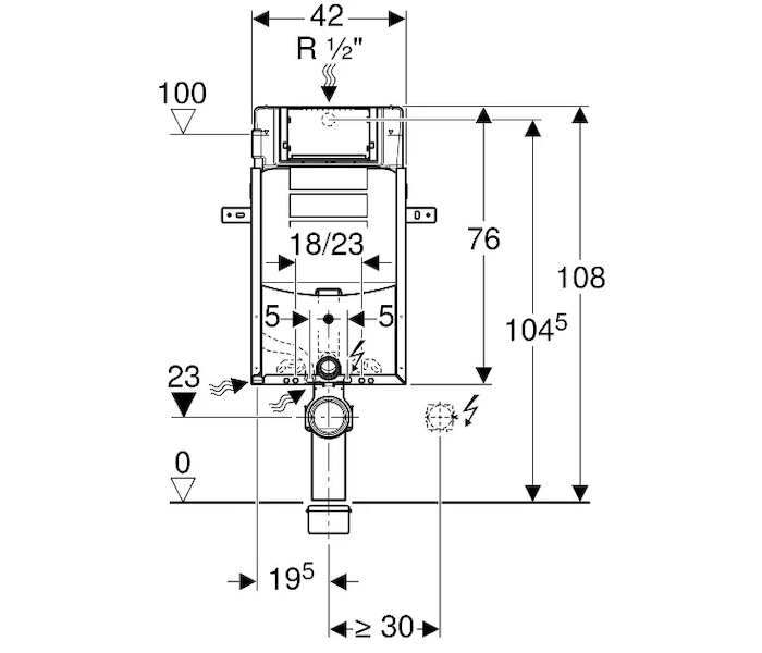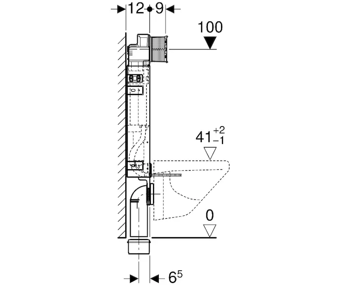- vybaven trubkovou chráničkou pro přívodní potrubí k připojení sprchovacích WC Geberit AquaClean