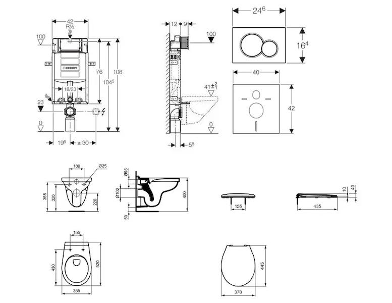 - pro závěsná WC s připojovacími rozměry podle EN 33:2011