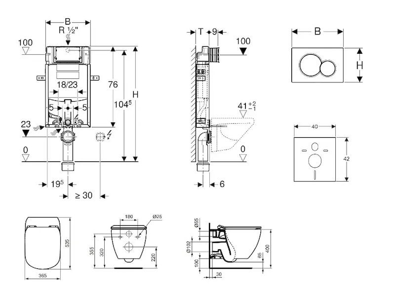 Geberit Kombifix - Set předstěnové instalace, klozetu a sedátka Ideal Standard Tesi, tlačítka Sigma01, SoftClose, alpská bílá 110.302.00.5 NU1