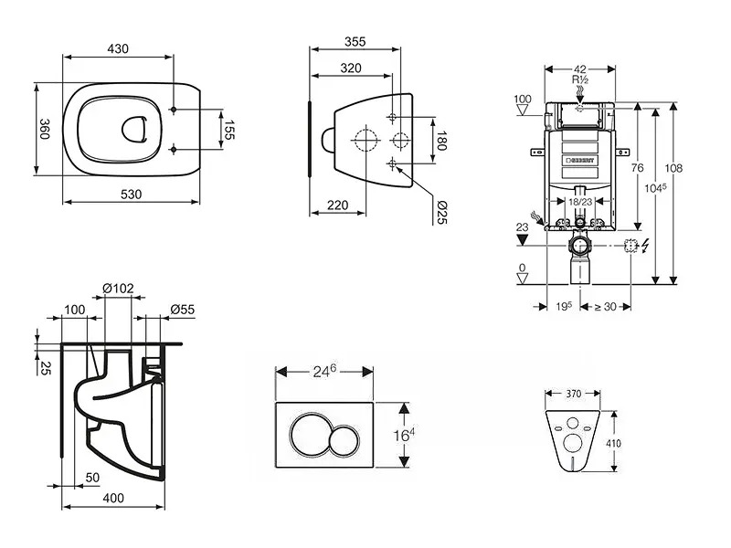 - pro závěsná WC s připojovacími rozměry podle EN 33:2011