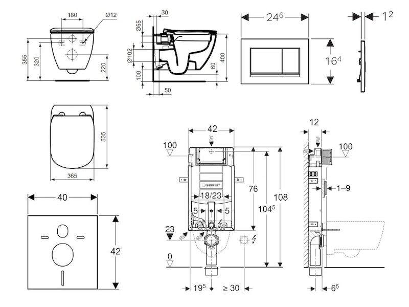 - vybaven trubkovou chráničkou pro přívodní potrubí k připojení sprchovacích WC Geberit AquaClean