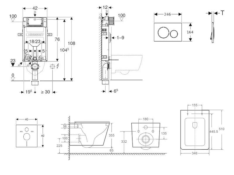 - vybaven trubkovou chráničkou pro přívodní potrubí k připojení sprchovacích WC Geberit AquaClean