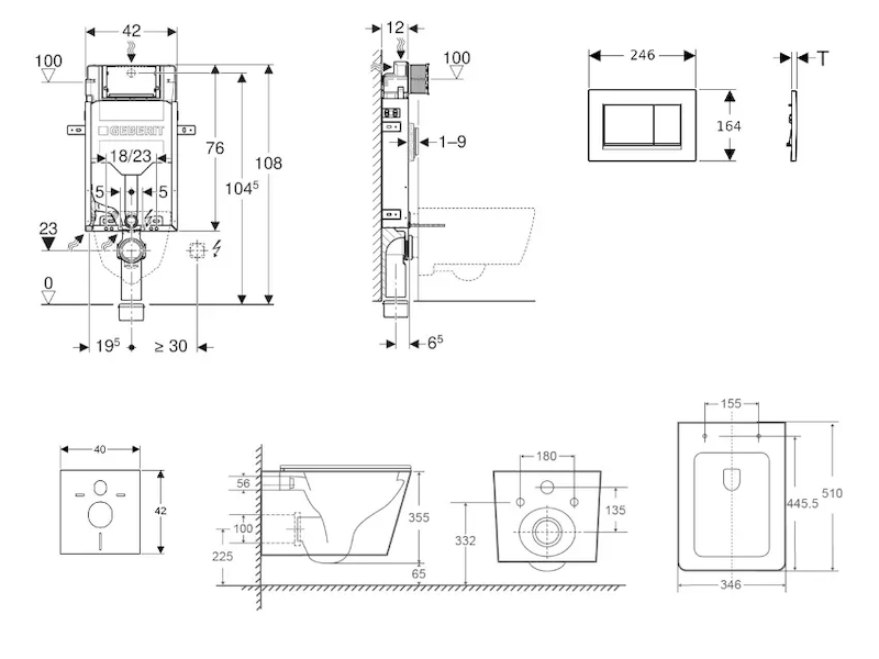 - vybaven trubkovou chráničkou pro přívodní potrubí k připojení sprchovacích WC Geberit AquaClean