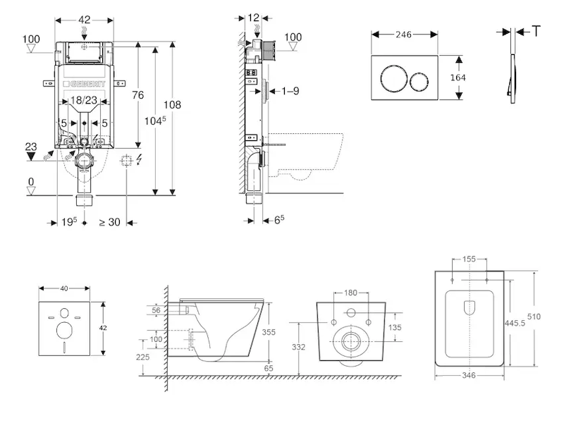 - vybaven trubkovou chráničkou pro přívodní potrubí k připojení sprchovacích WC Geberit AquaClean