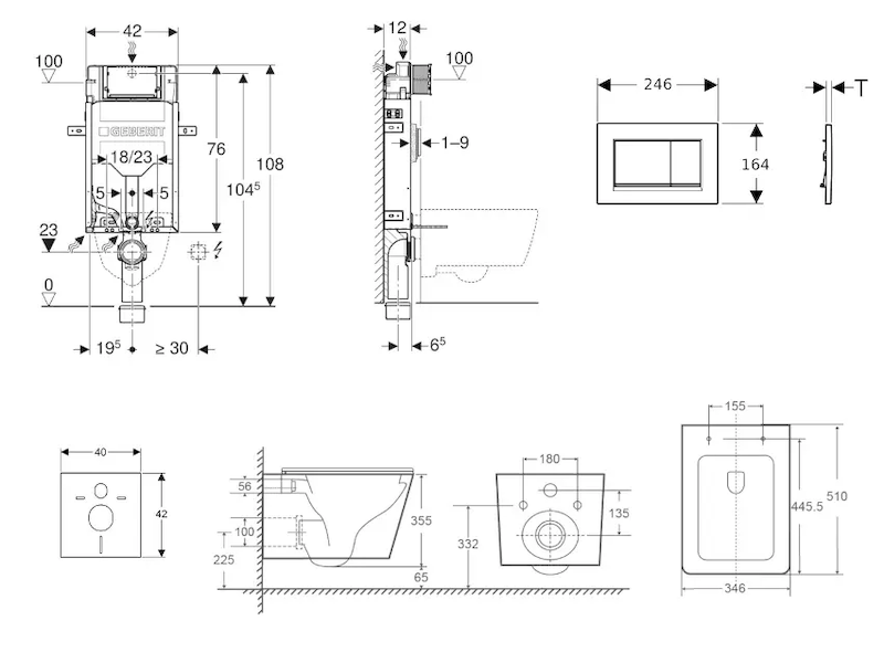- vybaven trubkovou chráničkou pro přívodní potrubí k připojení sprchovacích WC Geberit AquaClean