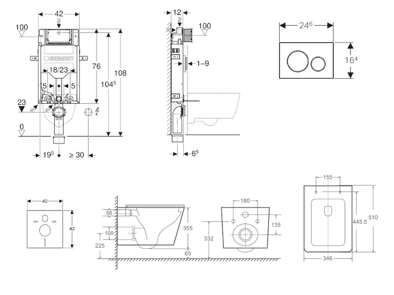 - vybaven trubkovou chráničkou pro přívodní potrubí k připojení sprchovacích WC Geberit AquaClean