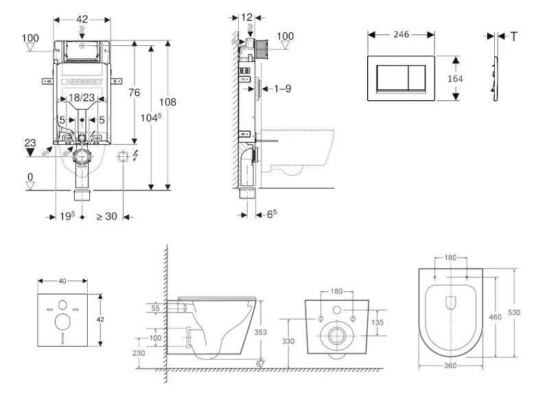 - vybaven trubkovou chráničkou pro přívodní potrubí k připojení sprchovacích WC Geberit AquaClean