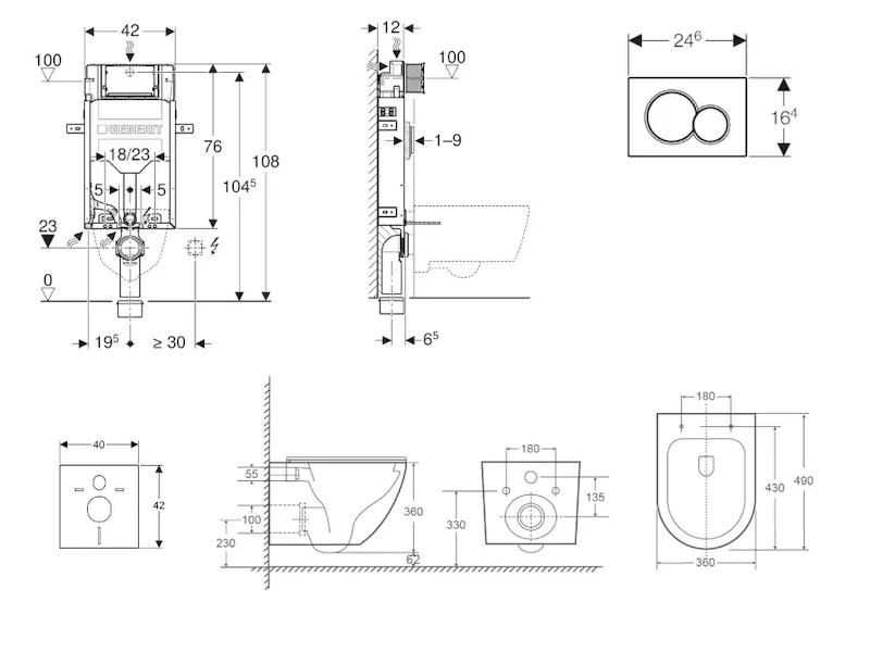 - vybaven trubkovou chráničkou pro přívodní potrubí k připojení sprchovacích WC Geberit AquaClean
