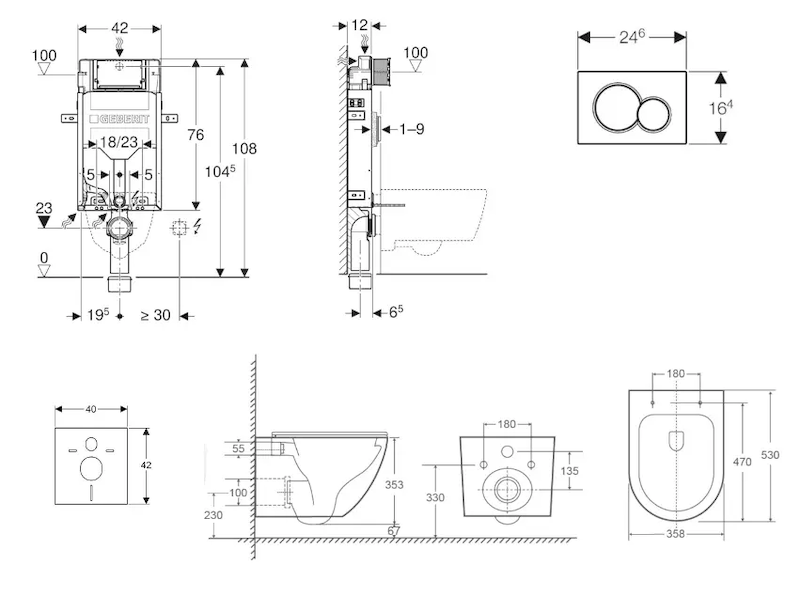 - vybaven trubkovou chráničkou pro přívodní potrubí k připojení sprchovacích WC Geberit AquaClean