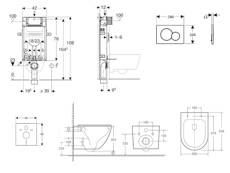 - vybaven trubkovou chráničkou pro přívodní potrubí k připojení sprchovacích WC Geberit AquaClean