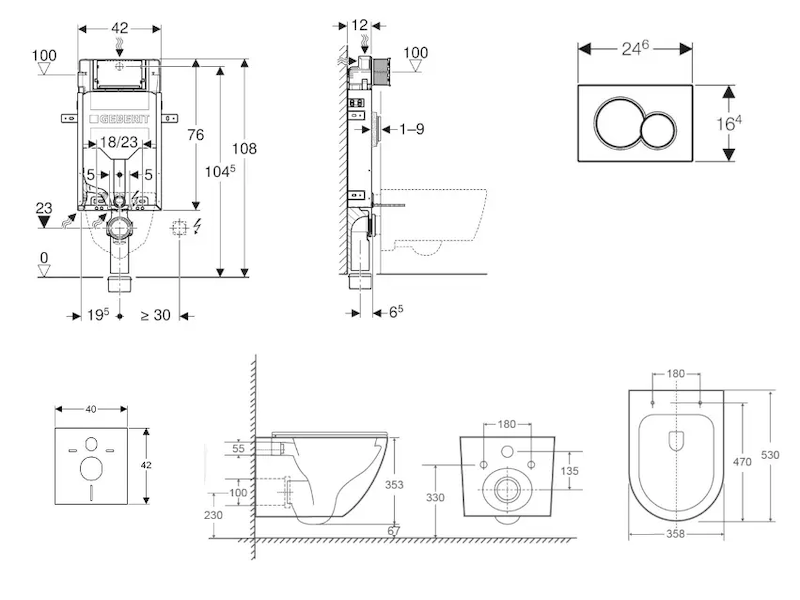 - vybaven trubkovou chráničkou pro přívodní potrubí k připojení sprchovacích WC Geberit AquaClean