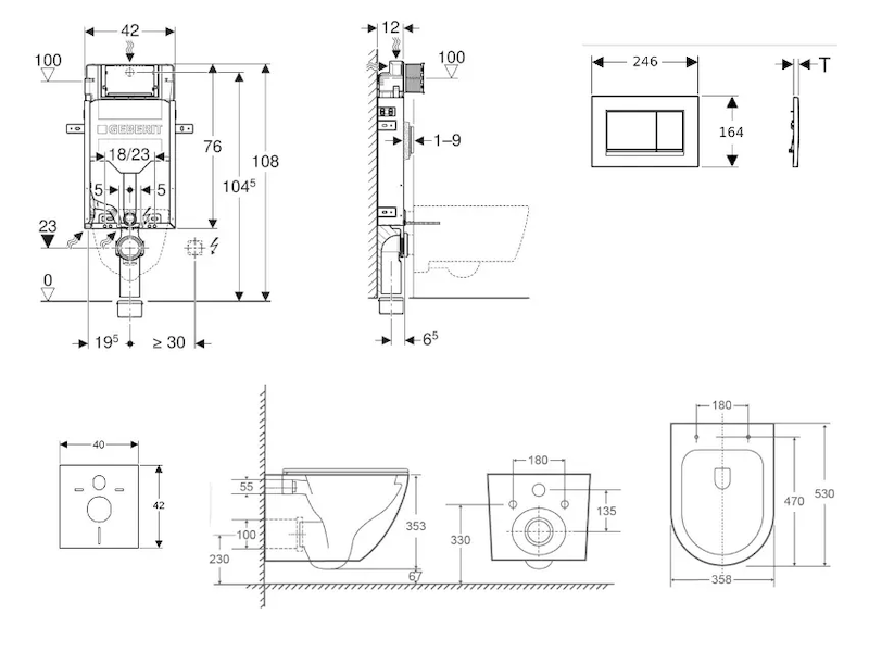 - vybaven trubkovou chráničkou pro přívodní potrubí k připojení sprchovacích WC Geberit AquaClean
