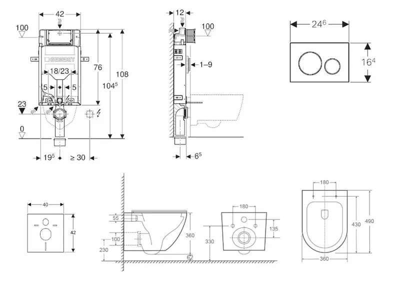 - vybaven trubkovou chráničkou pro přívodní potrubí k připojení sprchovacích WC Geberit AquaClean