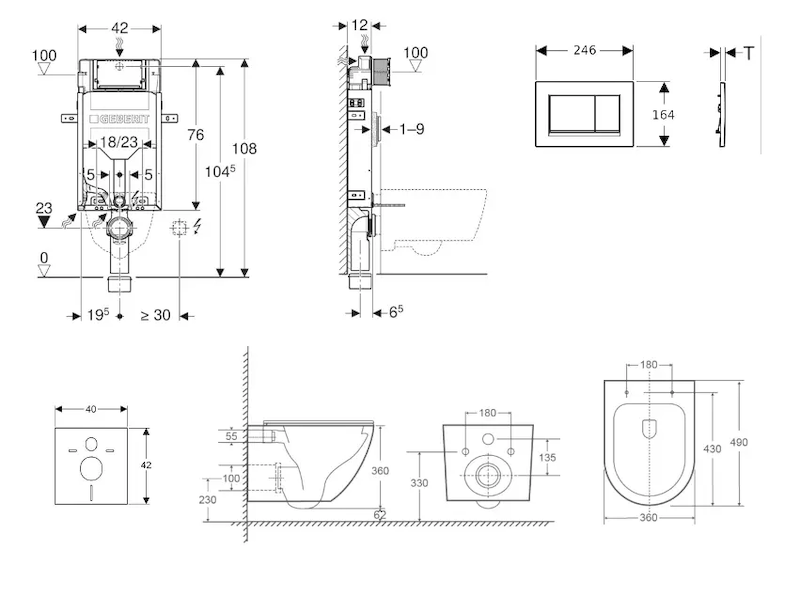 - vybaven trubkovou chráničkou pro přívodní potrubí k připojení sprchovacích WC Geberit AquaClean
