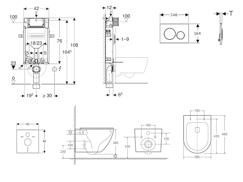 - vybaven trubkovou chráničkou pro přívodní potrubí k připojení sprchovacích WC Geberit AquaClean