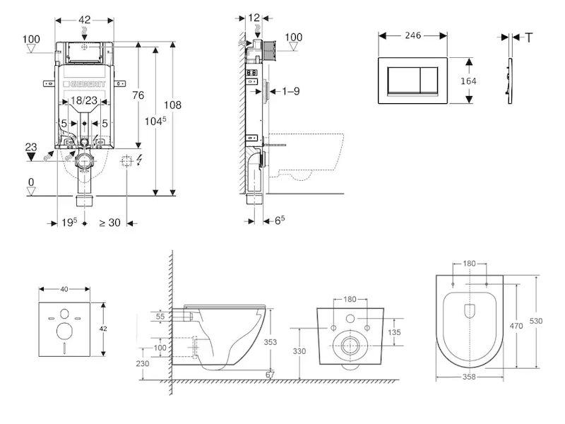 - vybaven trubkovou chráničkou pro přívodní potrubí k připojení sprchovacích WC Geberit AquaClean