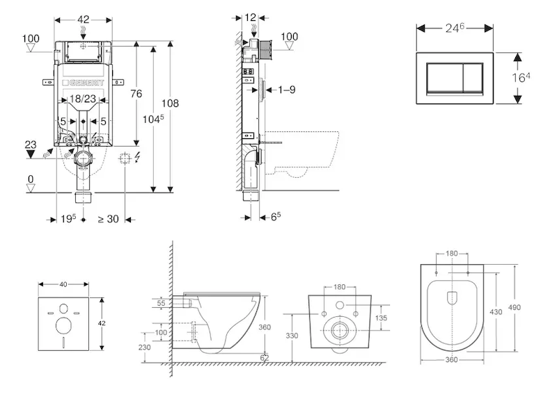 - vybaven trubkovou chráničkou pro přívodní potrubí k připojení sprchovacích WC Geberit AquaClean