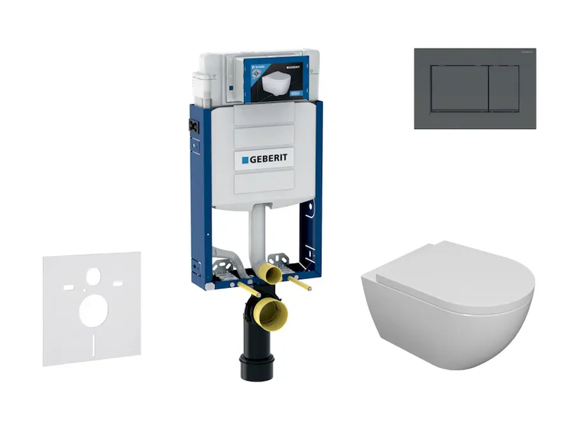 Geberit Kombifix - Set předstěnové instalace, klozetu Oudee a sedátka softclose, tlačítko Sigma20, matná černá/černá SANI15CA5100